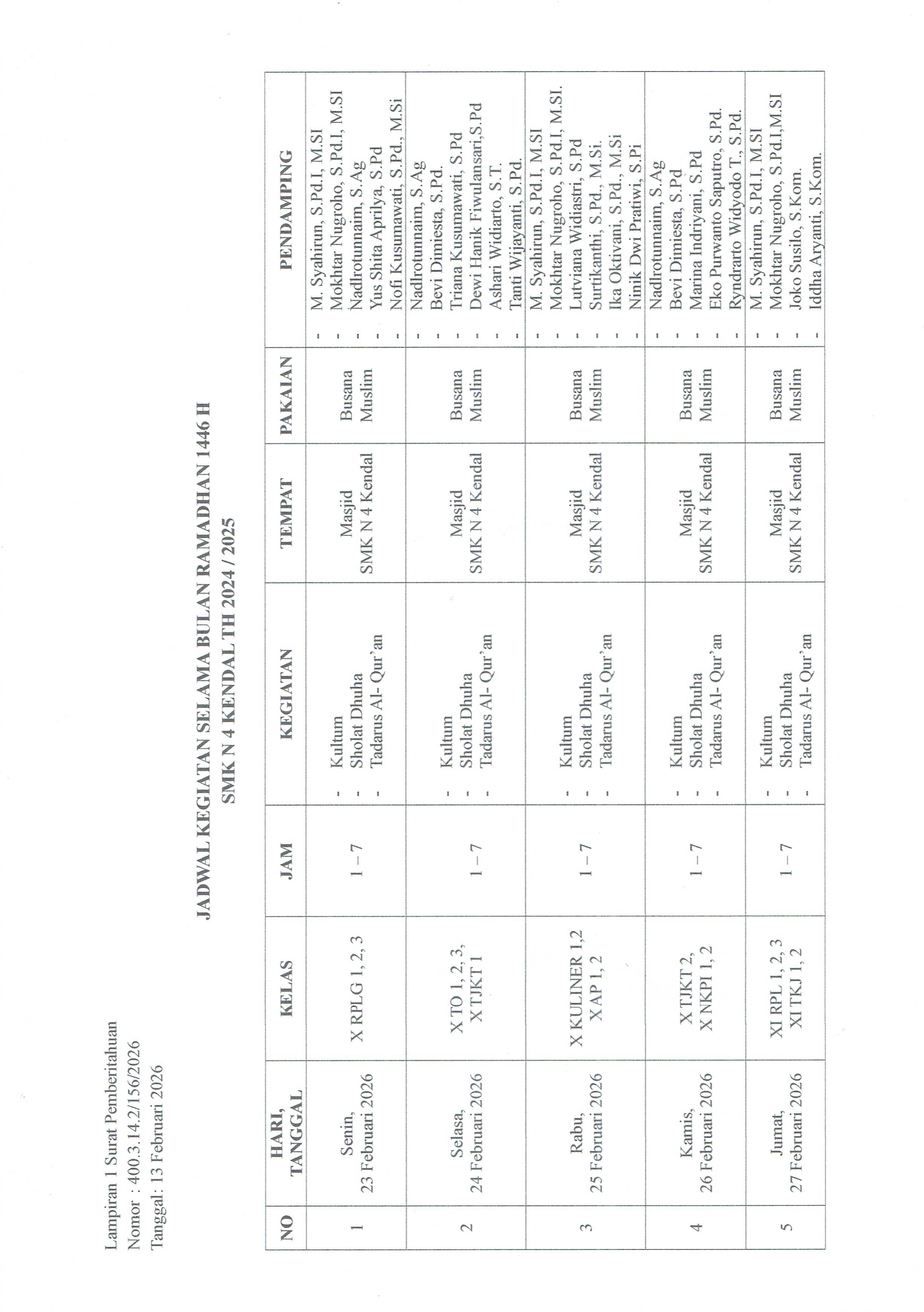 Pemberitahuan Libur dan Kegiatan di Bulan Ramadhan 1447 H/2026 M